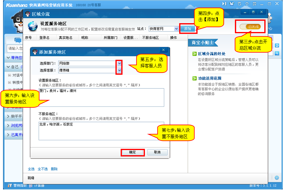 好处二:设置相应的客服,负责相应的地区,如:A客服负责上海、江苏;