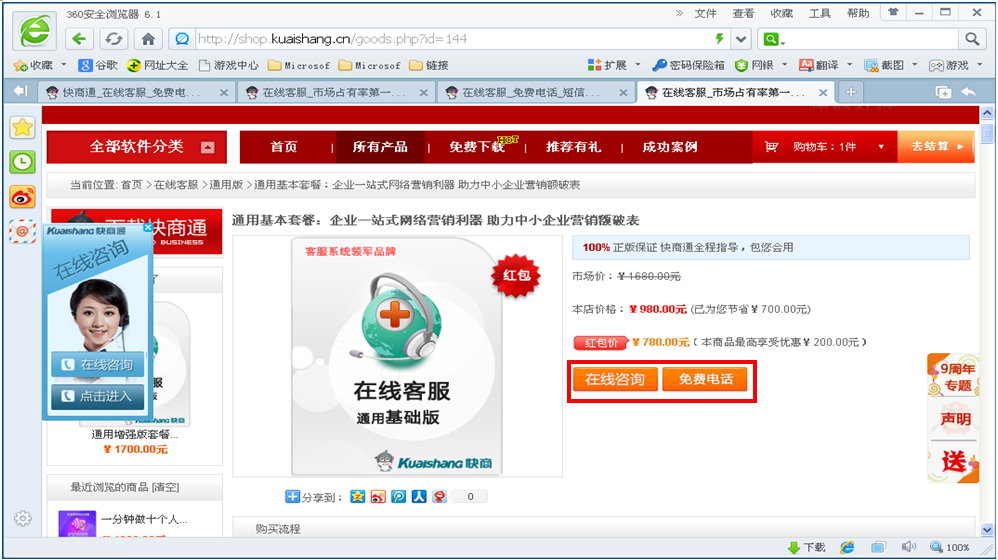 快商通免费版在线客服可以绑定几个域名?