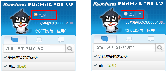 原因二:当客服登录状态为“离开”或“忙碌”、“离线”时,是不参与自动分配对话的;