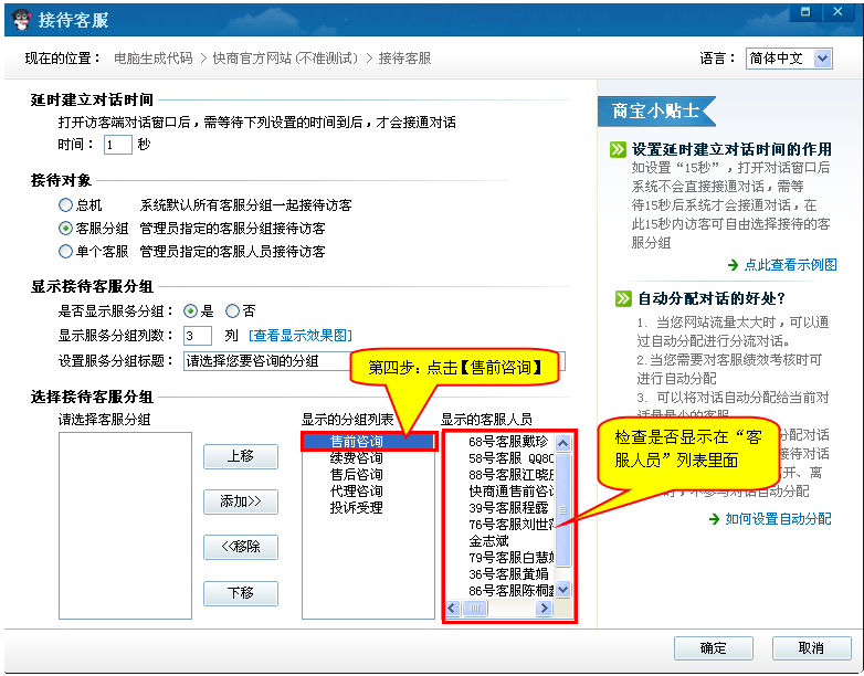 原因三:当“选择需要接待的网站站点”没有勾选,或未勾选全面,也会导致分配对话不均;