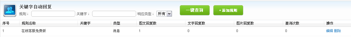 关键词自动回复,指关键词应答,用户输入关键词时,系统先判断用户所在菜单层级,然后搜索菜单层级内关键词,关键词自动回复,使得企业信息显示更有针对性,关键词利用率更高,避免了与全集关键词混淆。