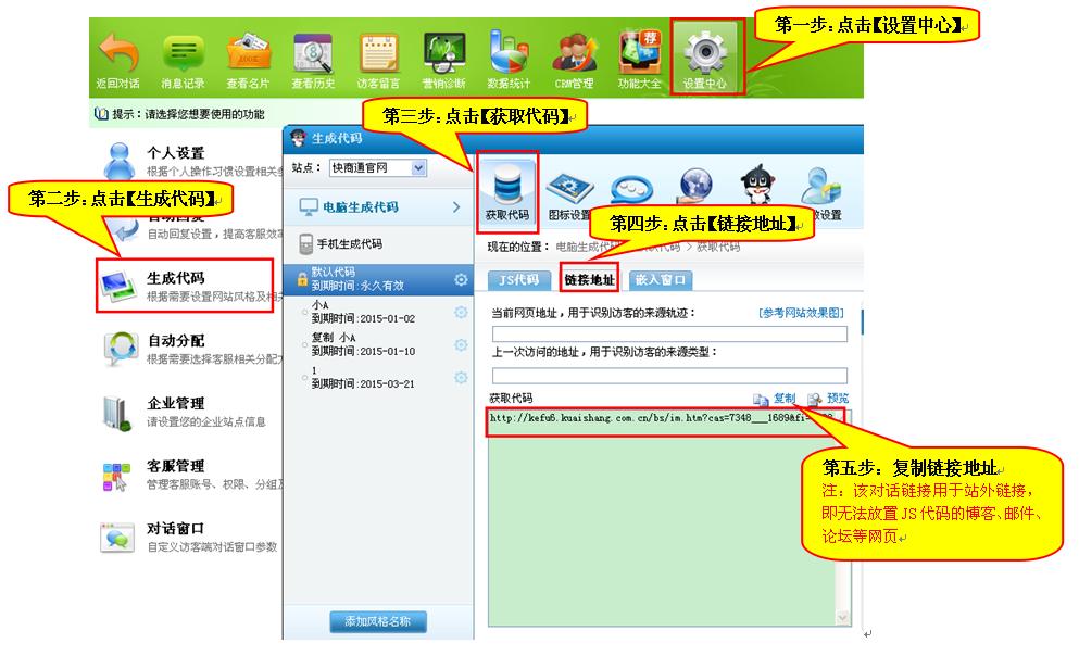 2)请确认您的站内链接全部有更换为点击JS代码进入对话窗口的事件代码形式。事件代码为: