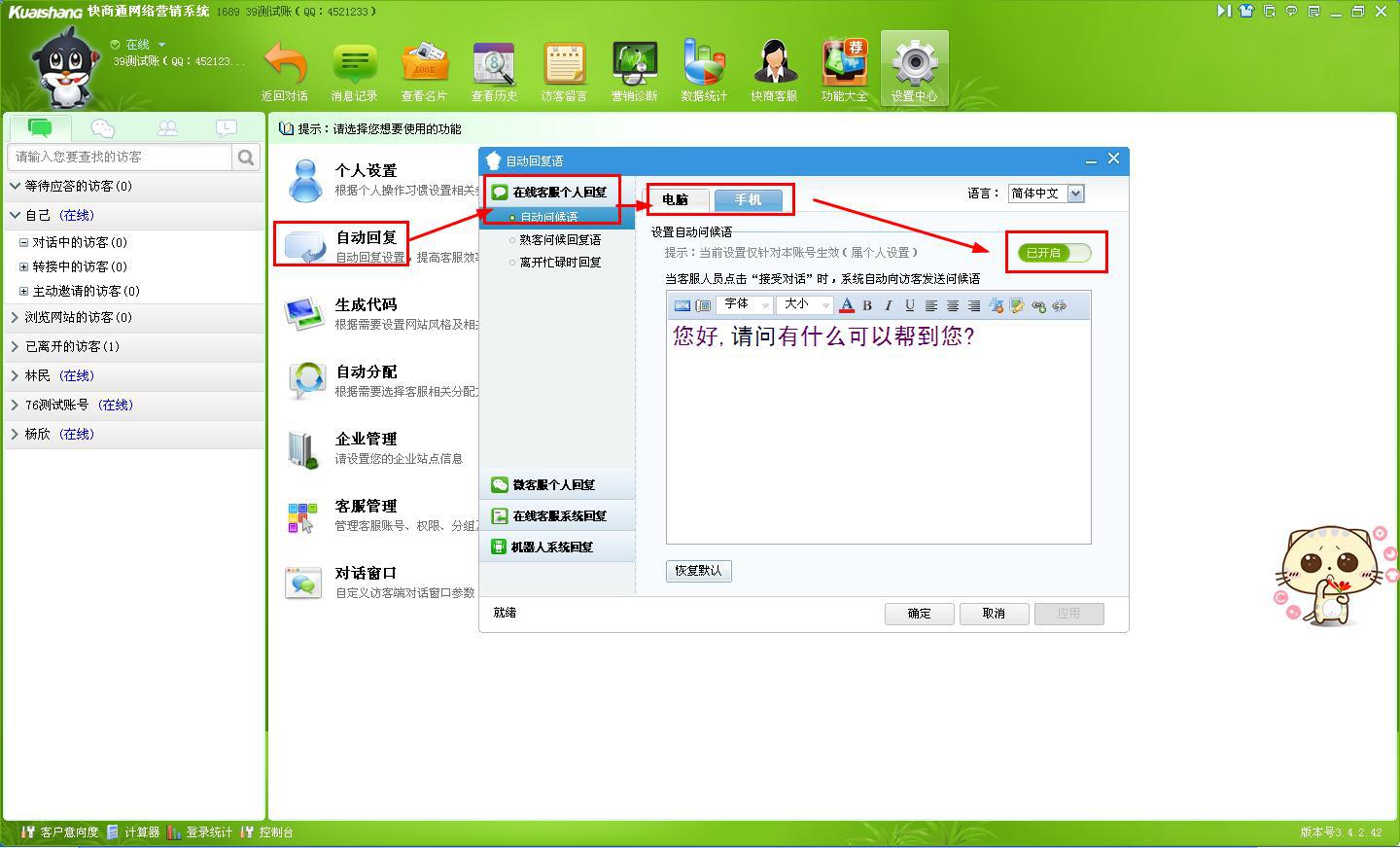 快商通免费电话在界面上可以设置多个服务坐席么?