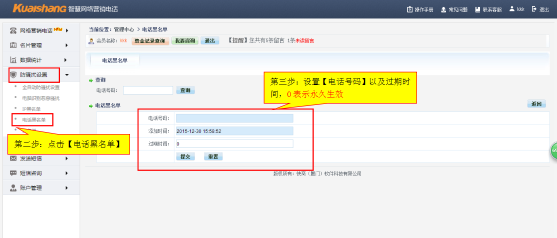10)您被快商通屏蔽了,点击您的快商通链接地址进入即可得知是否屏蔽,若被屏蔽,请点击“设置中心—屏蔽列表—解除屏蔽”;