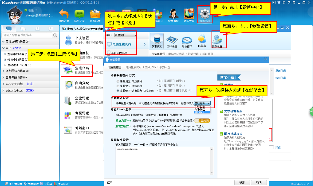 确定您设置的转留言是在【设置中心】--生成代码--参数设置, 还是在【客服管理】—客服资料—高级设置中修改的。