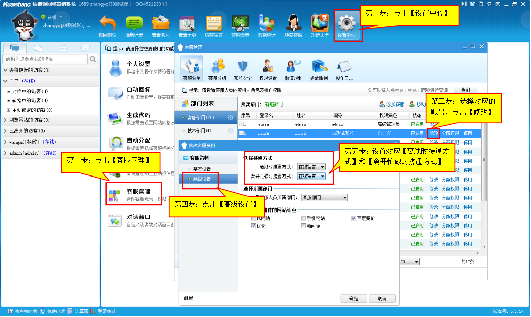 2)在【客服管理】—客服资料—高级设置中修改的。