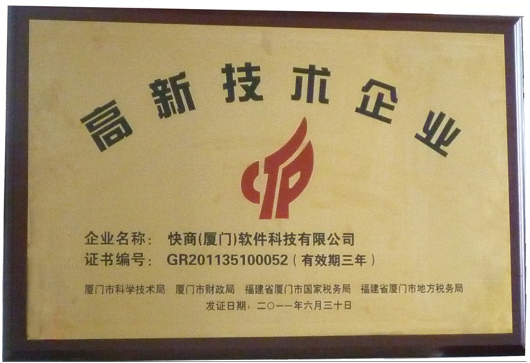 近日,经厦门市科委、市财政局、市国税局、市地税局组织专家评审,快商(厦门)软件科技有限公司(以下简称“快商”)再次荣获厦门市2011年度首批认定的“高新技术企业”称号。