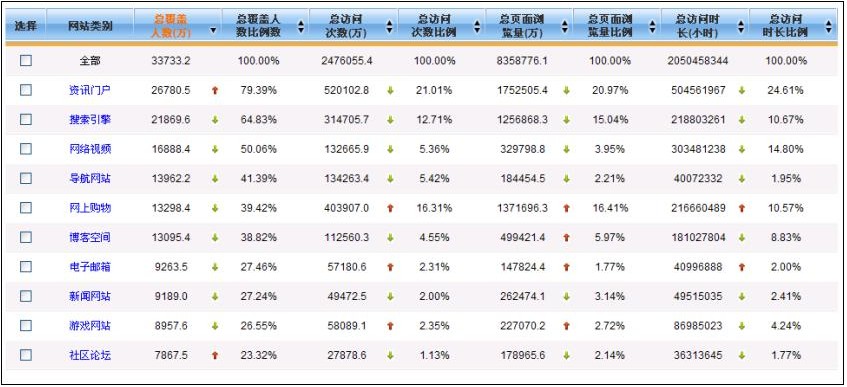 图2.“中国互联网数据平台” 中的主流网站/软件统计数据示意图