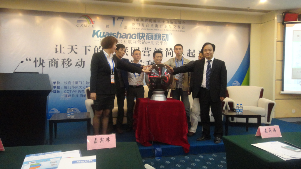 本次新品发布会上厦门市诚信企业家协会秘书长陈少华、厦门市文化创意产业协会副理事长刘登飞、快商(厦门)软件科技有限公司市场总监杨丽娟以及三位电子商务嘉宾共同启动了新品发布会仪式,推出全新移动产品3G手机网站、移动APP推广和手机APP制作。当移动互联网与传统工业的融合,智能手机在其中发挥重要的作用,未来通过手机访问您企业网站的客户将远远超过电脑客户,企业主可通过快商移动平台向数万个优质应用投放广告或者开发属于自己企业的手机APP,移动互联网将带来更多商机和订单。