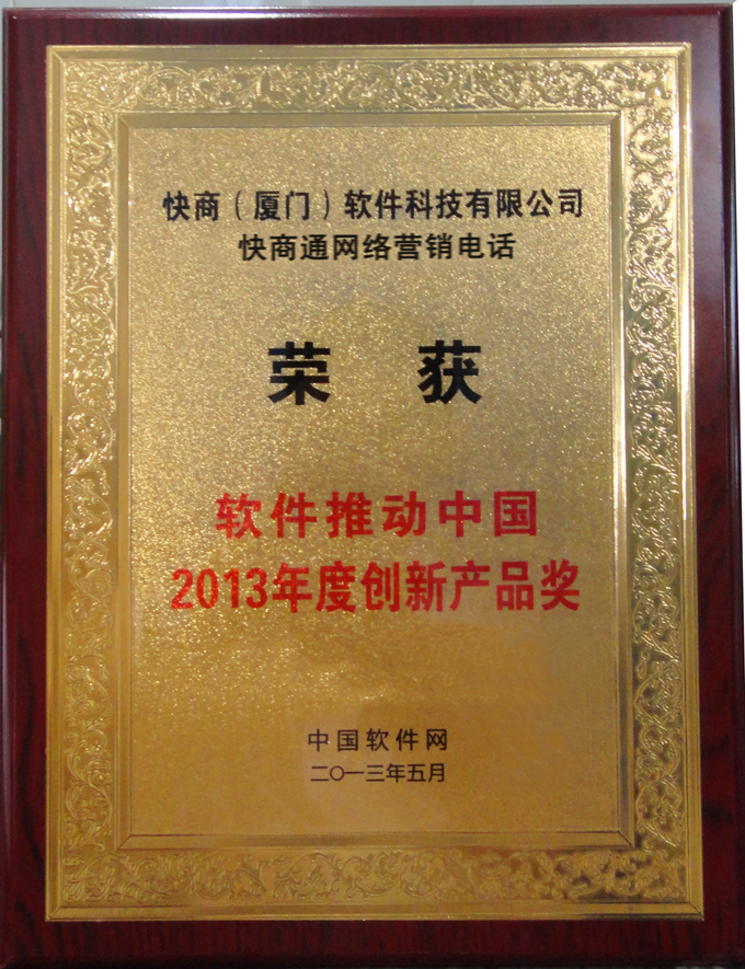 快商软件所属品牌作为国内互联网营销软件领域的佼佼者应邀参展盛会。本次参与各大奖项角逐的有 IBM、微软、金山、用友、东软、金蝶等30多家国内外主要企业,快商软件凭借在互联网营销领域卓越的品牌影响力和旗下产品出色的技术性能,最终快商通在线客服和网络营销电话摘得了“软件推动中国——2013年度创新产品奖”,快商移动广告云平台摘得了“软件推动中国——2013年度首选品牌奖”共三项殊荣。
