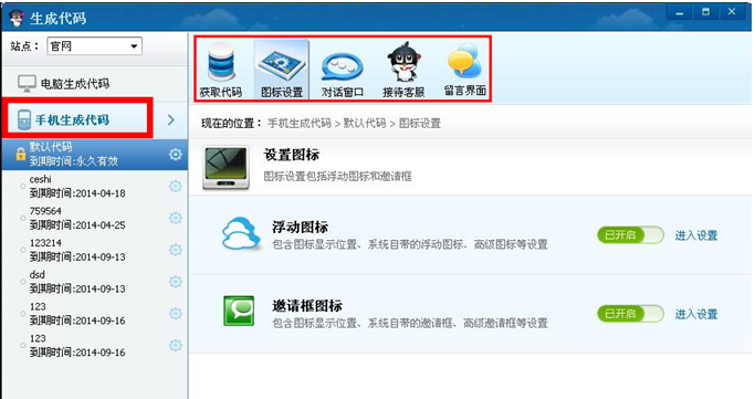 4、新增手机生成代码,将PC网站和手机网站的相关设置区分开,有利于客户根据手机网站制定相关信息。
