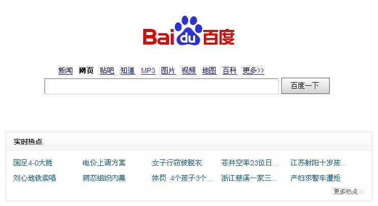 以上是关于“体罚 4个孩子3个进北大”搜索结果的微博部分的分析,可能很多人说这个是特例,不能代表全部的现象。为了抽取更多的实验数据,大家可以打开百度,看下图的百度的热点图: