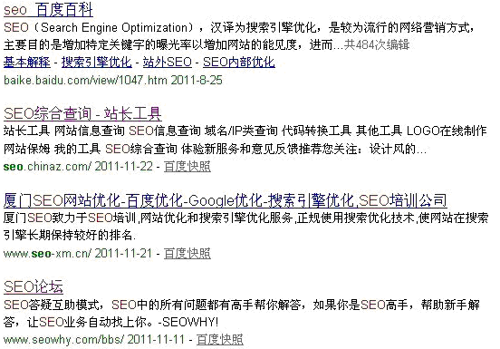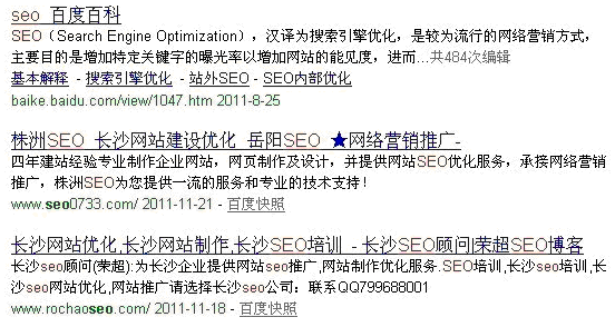 为了满足更多用户的需求,百度搜索引擎给予用户的搜索结果产生地域差别,比如我们在北京搜索搬家公司,搜出来的前几名一般都是当地的,因为在北京搬家一般都是找本地的,不可能找别的城市的,这也是搜索引擎为了更好的用户体验而设定的,除了一些跟实际生活相关的关键词,一些似乎跟地域无关的关键词也会有这样的表现,下面我们来看看“seo”这个关键词,不同地区产生的结果也是不一样的: