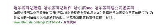 这张就是没抓取到"Description" 属性的图片,也就是大家说的描述,其实正确的"Description" 属性应该是“哈尔滨网站建设,哈尔滨网站制作,哈尔滨网页设计制作,哈尔滨网站优化推广,哈尔滨seo技术-哈尔滨网络公司虚实网站设计为站长提供网站优化推广和seo技术的平台”遇到这个问题,基本网站不会有排名的,当遇到这样的问题,我们先这样去分析。