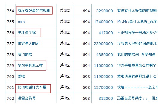 疑问型的长尾关键词做得最好的当属是问答平台,而且大家可以看百度知道的排名中,许多的关键词排名都是以疑问句的形式显现的,如图: