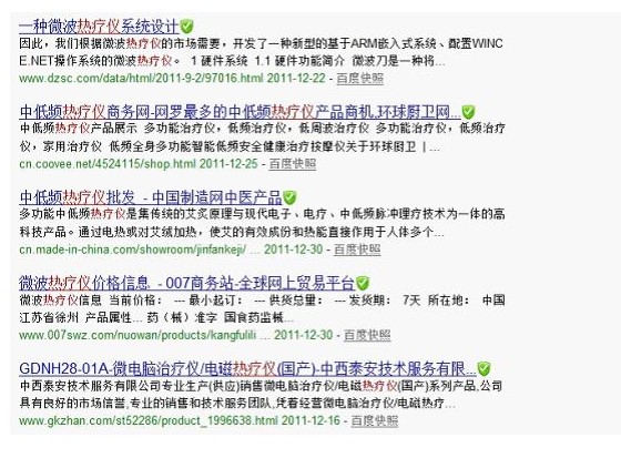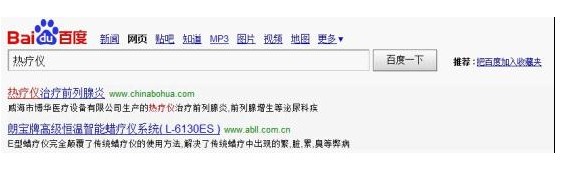 做过营销的朋友想必都知道,除了所谓的网络营销,搜索引擎优化,简称SEO,大家都应该听过。如果一个网站没有做搜索引擎优化,那么网站是很难让理想客户找到您的。例如我随便举个例子。比如最近要过年了,我想给我父母买一个热疗仪,于是我就在百度搜搜”热疗仪“这一关键词。