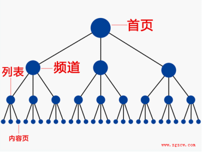 对于大型门户网站,网站信息量比较大,最好采用树形网站结构,如下图;