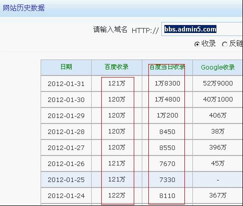 从上图中,我们可以看到A5论坛每天收录的帖子都成千上万,而百度总收录总是维持在一定的数量。很明显搜索引擎进行大量收录后有进行大量的删除,如果我们在论坛上建设的外链质量不高,很容易造成站点的外链增多减少的反复情况。所以做论坛外链我们也要考虑质量问题。