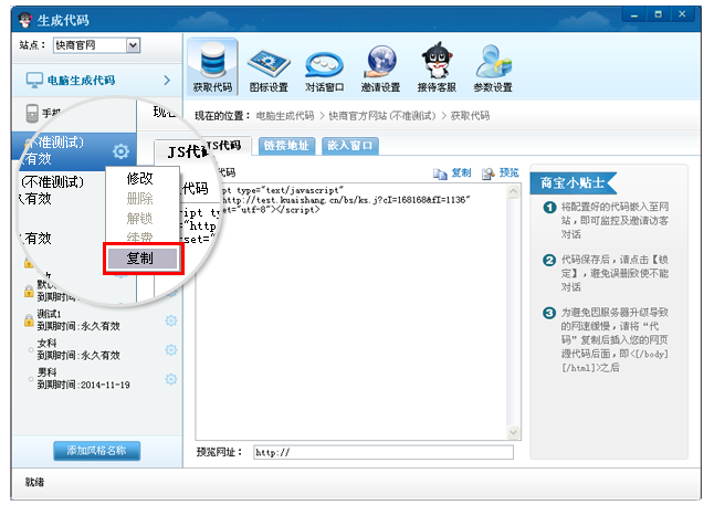 技术人员只需要一步,即可获取到已配置好的代码,如在线客服邀请框,复制只要简单添加或者修改即可完成其他邀请框设置,无需一一重新设置了;