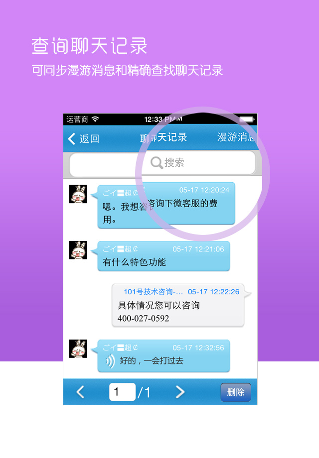 Iphone版微客服,可以同步漫游消息,支持聊天记录查询,能对微信访客名称进行聊天记录查看,对客户需求进行深度分析。