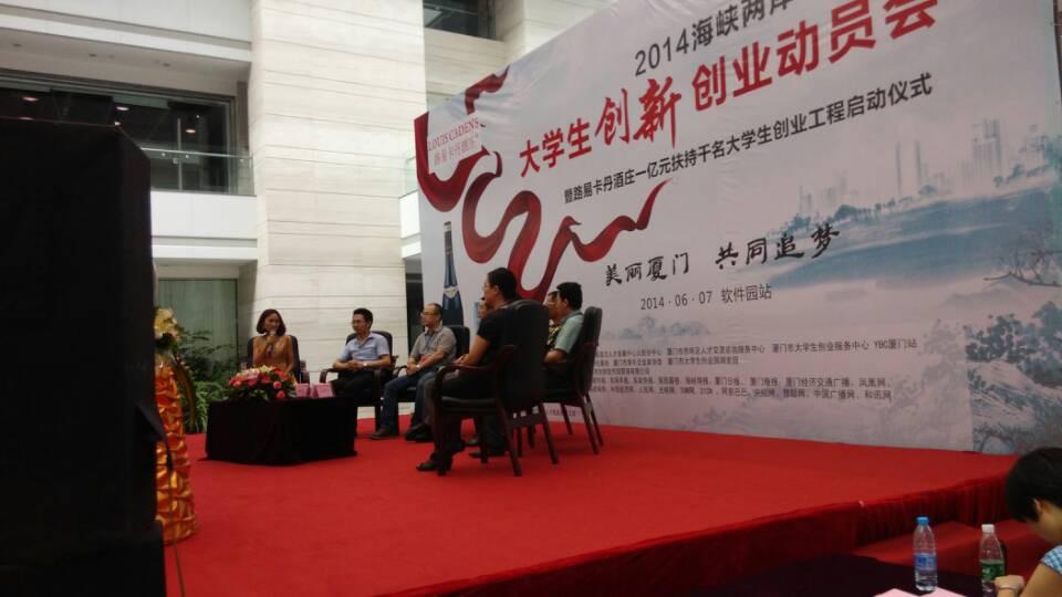 以“美丽厦门共同追梦”为主题的2014海峡两岸(厦门)大学生创新创业动员大会电子商务专场,于2014年6月7日下午在厦门市软件园二期隆重召开。活动吸引了来自厦门大学、集美大学、华侨大学、厦门工学院和南洋学院等厦门各大高校数百名大学生和社会各界的广泛支持与关注。