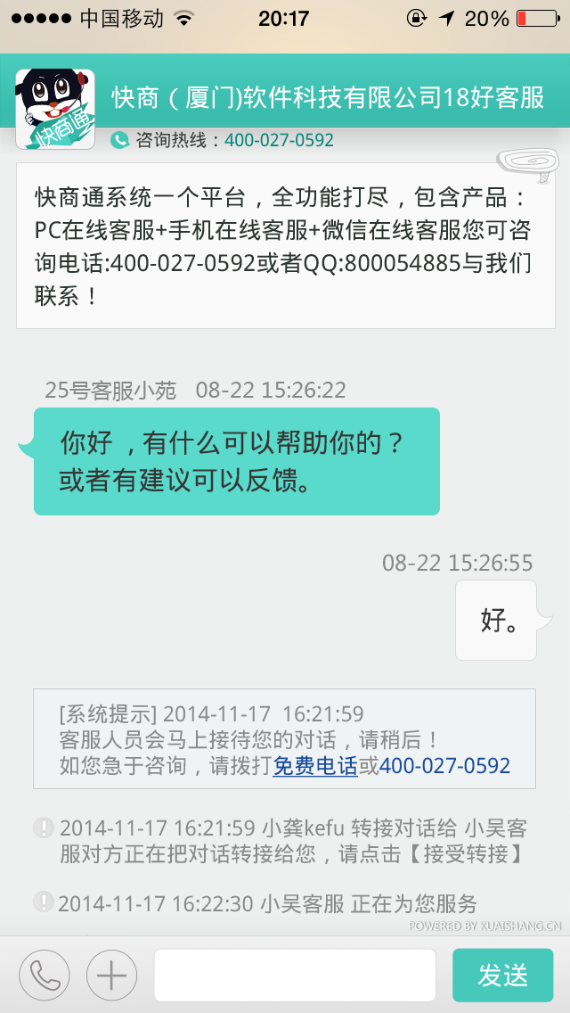 感谢您长久以来对快商通的支持。为了提升快商通的产品品质,给广大用户提供更优质的服务与体验,回报广大用户对快商通的支持与关心,我司对快商通【在线客服】产品从功能、操作体验、数据保存等多方面进行了更新,新增的功能如下: