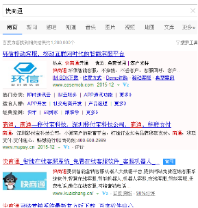 再比如输入关键词“快商通”会出现许多的链接、搜索量,可以快速知道点击率。这里看一下百度搜索。