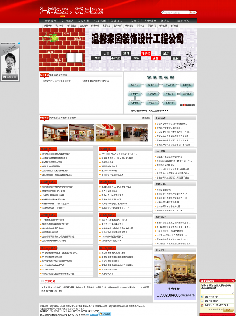 温馨家园装饰设计工程公司成立于2002年初,注册地在北京,注册资本300万,具备国家级施工资质,总部坐落于充满了人文气息的古城西安,经历近九年的发展,温馨家园装饰设计工程公司逐步形成了以西安装修公司为基地,业务范围辐射全国各大中型城市的跨区域性知名家装企业,公司现拥有40多名专业性设计施工人员,为客户提供集勘测、设计、施工、客户服务一体化的专业性工装、家装服务,并与全国大中型城市内的数十个知名家装企业建立了良好的合作伙伴关系。