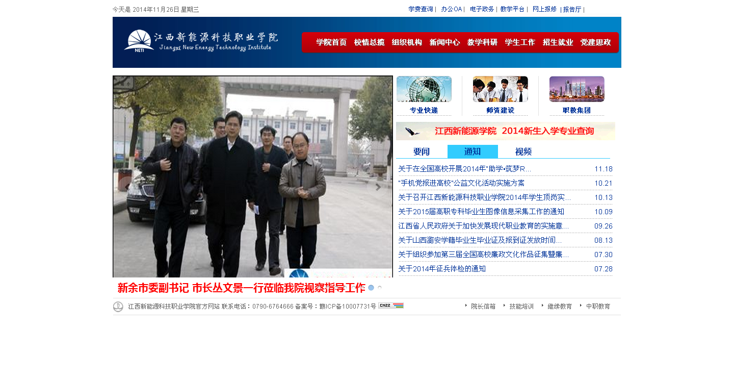 江西新能源科技职业学院是经江西省人民政府批准、国家教育部备案的全日制普通高等院校,是全国首家也是唯一的太阳能专业学院。学院重点面向太阳能光伏光热、风能、其他新能源、节能减排技术等领域的产品制造产业链,针对其产品制造过程、生产管理、设备维修管理、市场营销、工程施工与管理、产品应用等环节构建特色专业,形成以工科类专业为重点,经济管理、艺术设计等专业协调发展、相互促进的专业架构。