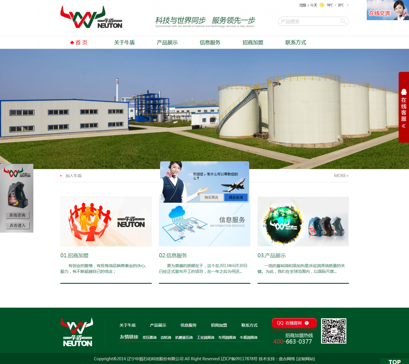 辽宁中旭石油化工有限公司旗下的牛盾润滑油(NEUTON)是一间全资附属公司,成立于2013。品牌成立不久但在公司强大的资金实力与先进的技术支撑下在短短的一年内业务遍及辽宁吉林黑龙江内蒙等省市。产品主营车用润滑油与工业润滑油 作为国内领先的高档润滑油及相关服务的制造商,经销商和营销商,牛盾为各地的汽车、工业、海洋、航空、生产的客户提供高品质产品和相关服务。每一个牛盾人始终将做国人第一品牌润滑油视为己任。